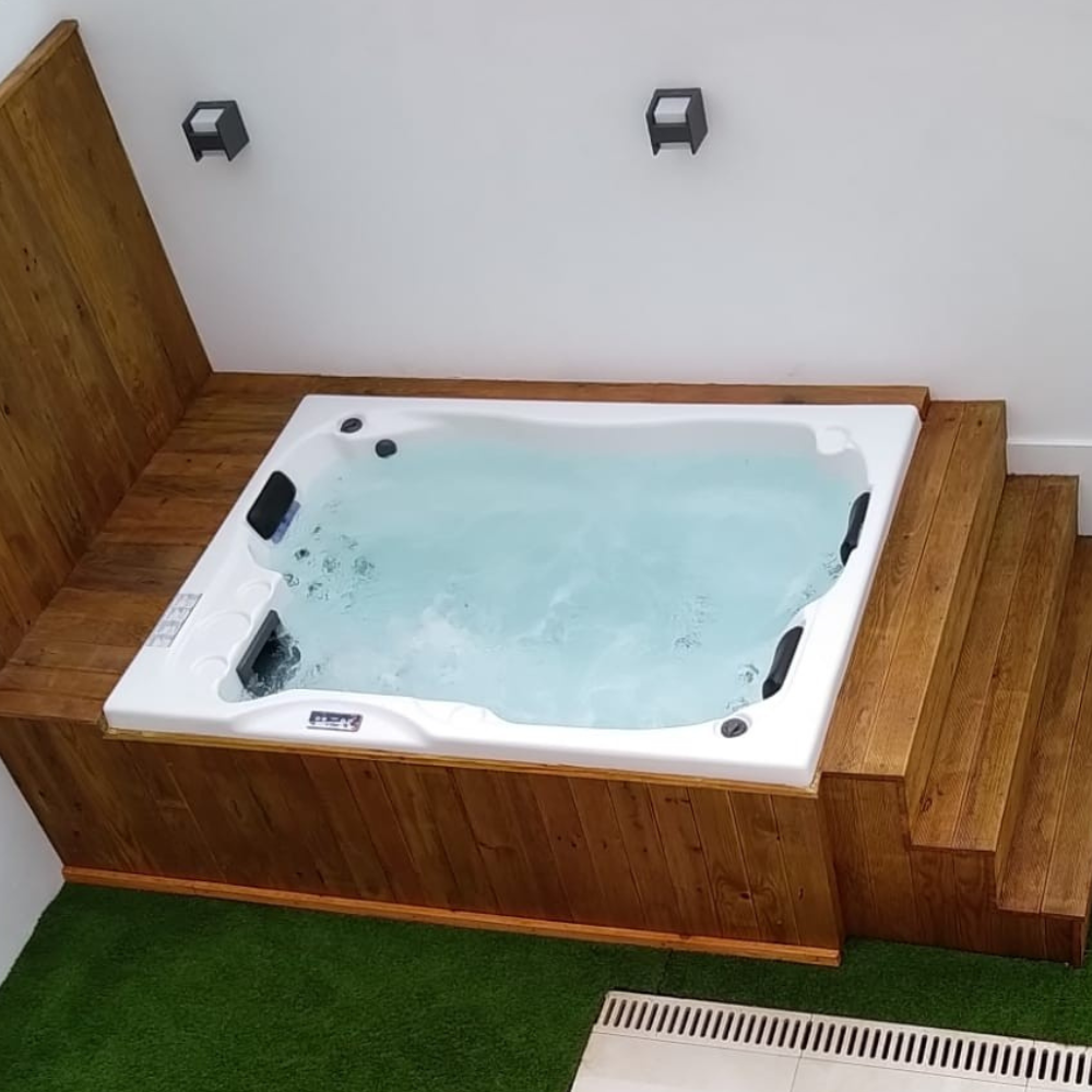 O Spa Emotion 3 é o modelo mais atrativo em termos de preço-qualidade. Com capacidade até 3 lugares, é possível estar simultaneamente duas pessoas sentadas mais uma deitada. Apresenta uma linha muito interessante, traços retilíneos, e inclui outras características como leds cromoterapia RGB, cascata de água, massagem de reflexologia, painéis laterais e cobertura térmica em preto.